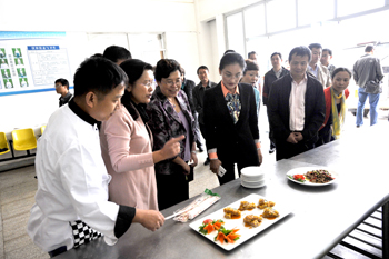 威尼斯官网党委书记陈世波、校长蒋永文、副校长熊晶热情接待了富民县领导班子一行。熊副校长通过校园模型沙盘,向来宾介绍了学校的建设发展情况。并陪同来宾参观了综合体育馆、烹饪实验室、滇池流域生态文化博物馆、轨道交通实验室、化学系、农学院、酒水实验室。
