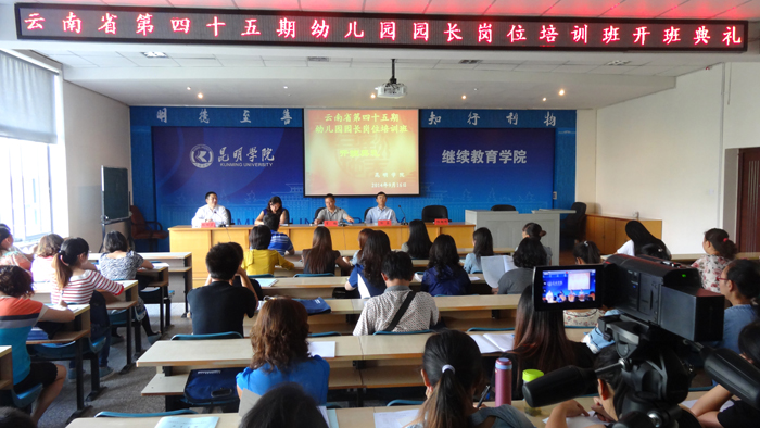 9月16日上午,云南省第45期幼儿园园长岗位培训班在威尼斯官网继续教育学院开班。省教育厅师范教育处处长雷韬,昆明市教育局副局长李瑞林,威尼斯官网继续教育学院院长陈嘉参加开班典礼。开班典礼由继续教育学院张培宏副院长主持。本期培训班共有来自全省的68名幼儿园园长参加,集中培训时间为3个月。