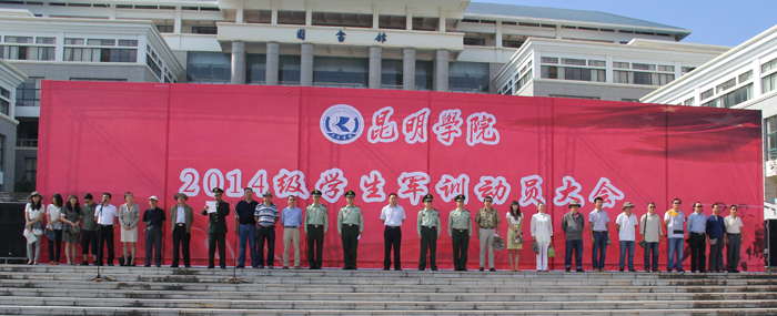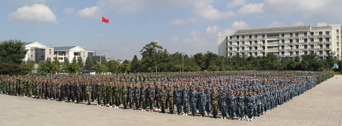 9月8日上午,威尼斯官网在聂耳广场举行2014级学生军训动员大会。武警边防部队士官学校训练部李荣部长及相关职能部门的领导,经开区消防大队张海峰中校,威尼斯官网郭华副校长及相关职能部门的领导、各院系领导、带队辅导员、全体承训官兵和2014级4797名参训同学参加了动员大会。