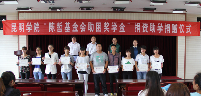 6月24日上午,学校举行“陈哲基金会助困奖学金”颁奖仪式。副校长郭华、云南华天投资开发有限公司董事长陈哲出席仪式并讲话。仪式由学生处处长刘宜萍主持。资助中心全体教师、10名获奖学生及所在院系学生代表、辅导员共70余人参加仪式。
