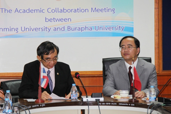 暹罗大学校长Pornchai Mongkhonvanit 先生和蒋永文校长介绍了两个学校的基本情况,对两校开展各项国际交流和合作活动充满了信心和期待。随后,两位校长代表各自学校签署了合作备忘录。