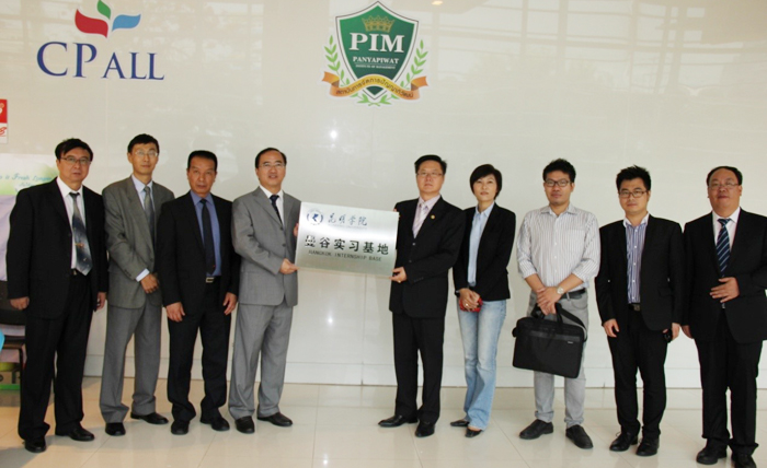 蒋校长代表1066vip威尼斯官网,对正大集团和正大管理学院的热情接待表示感谢,在介绍了威尼斯官网基本情况的基础上,表达了进一步加强和正大管理学院在师资培养、学生实习实训、教师及企业管理人员职后培训等多方面进行合作的愿望。随后,蒋校长和洪风先生代表两校签署了新的合作备忘录,并举行了“1066vip威尼斯官网曼谷实习基地”的挂牌仪式。