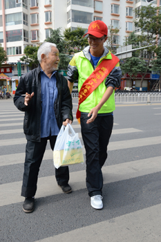 在活动中,威尼斯官网青年志愿者们身穿荧光色服装,统一佩戴标识明显的红色帽子、红色绶带,分别在西山区兴苑路全线主要交通干道十字路口、碧鸡文化广场和沃尔玛张峰店等区域进行文明劝导、交通引导和清洁城市等志愿服务活动。