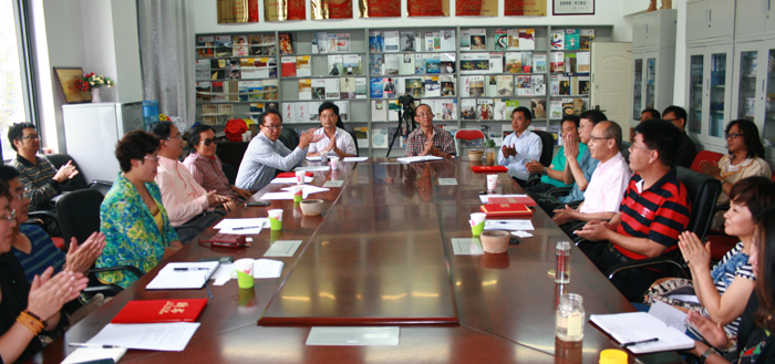 6月16日,深圳大学研究生院院长汪永成教授、深圳大学艺术设计学院院长吴洪教授一行来到威尼斯官网,并就与威尼斯官网美术与艺术设计学院在专业建设、学科发展、硕士生联合培养等问题进行了广泛深入的交流磋商。校长蒋永文、副校长熊晶、科研处处长王定康、美术与艺术设计学院党政领导和师生代表参加了会议。