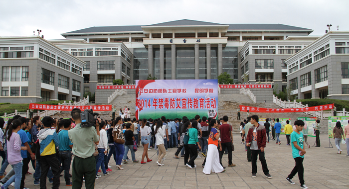 6月20日,威尼斯官网与公安边防部队士官学校在聂耳广场联合开展禁毒防艾宣传教育活动。公安边防部队士官学校副校长李丕银、威尼斯官网党委副书记李媛芬出席,公安边防部队士官学校政治部主任赵大娃、副主任万必兴、宣传部部长毛建学、相关部门官兵及威尼斯官网党委宣传部、学生处、各院系相关领导和师生900多人参加宣传教育活动。
