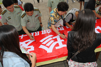 这次活动的主题是“禁毒防艾,远离毒品,珍爱生命,构建和谐”。活动设置禁毒知识图片展,利用图片向广大群众和学校师生展示、宣传毒品危害;制作“共携手远离毒品•促和谐珍爱生命”大型签名横幅,现场参加活动的领导和师生进行签名;向师生散发禁毒宣传传单;设立禁毒防艾宣传咨询台,就禁毒防艾方面知识和法律法规等现场接受师生咨询;在活动现场播放《防范冰毒危害,崇尚健康生活》等禁毒防艾宣传影片。