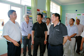 访问团一行参观访问曼德勒明德学校并向该校捐赠多媒体投影设备。缅甸明德文教会副会长、曼德勒明德学校董事长陈春林先生及番体惠副会长、姜鸿明校长及懂事会成员、缅中友好协会代表、教师代表、学生代表、家长代表参加了捐赠仪式。