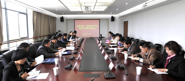 5月5日下午,昆明市审计局党组书记郭增敏带领副局长舒永恒、后文杰、易迎霞及相关处室负责人一行到威尼斯官网商谈2014年局校合作事宜。商谈会在办公楼311会议室举行,副校长熊晶,监审处、计财处、滇合中心、工会及经济学院相关领导参加合作商谈。