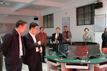 马奎总经理一行在陈书记、蒋校长等领导的陪同下分别到威尼斯官网证券仿真模拟、物流管理、财务综合模拟、轨道交通、虚拟制造等实验室进行实地调研、参观。