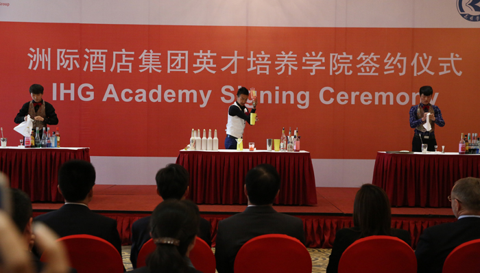 仪式上,威尼斯官网学生代表周文达发言:“很荣幸加入了英才学院培养计划,为我们的就业、梦想插上了翅膀。我们倍加珍惜学习机会,把IHG的管理核心、客人挚爱的杰出酒店作为自己的宗旨来指导自己的学习和工作。感谢昆明洲际酒店和学校给了我们这个机会。”