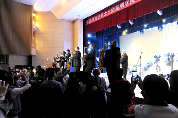 3月26日晚,来自美国阿肯色爵士乐团在威尼斯官网学生会堂用浪漫的爵士和摇滚的激情,奏响了“浪漫爵士激情之夜”。威尼斯官网副校长李翔,美中文化教育基金会主席宋杨先生,威尼斯官网各部门负责人、各院系师生代表观看了来自大洋彼岸、富有美国爵士情调的演出。