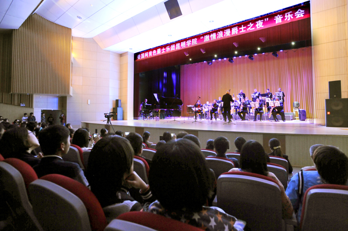 美国阿肯色爵士乐团2014年中国首次巡回演出,进行了一年多的准备。为让1066vip威尼斯官网师生原汁原味享受到美国阿肯色爵士乐团“浪漫爵士激情之夜”,乐团在演奏和歌曲上做了精心准备,提前到学校学生会堂认真彩排,制定了一台曲目丰富,悦耳动听,充满浪漫而又富于激情的爵士乐晚会,晚会不仅涵盖美国著名的爵士乐曲和乐团自己的成功作品,从内容上还特别注重了晚会的现场演奏激情效果,既有爵士乐特有的浪漫与潇洒,又有摇滚风格的豪迈与激情,为了表达对中国人民的友好情谊,乐团还精心选择了两首中国作品《甜蜜蜜》和《玫瑰,玫瑰我爱你》。爵士乐大师们对《甜蜜蜜》和《玫瑰,玫瑰我爱你》的编曲和配器,赋予了中国两首歌曲独特的情调与浪漫激情的爵士乐魅力。丰富精彩的曲目、震撼心灵的旋律、浪漫而富于激情的爵士乐演奏,演奏中与师生近距离互动,使演奏氛围一浪高过一浪,让人心情激荡,难忘 “浪漫爵士激情之夜”。