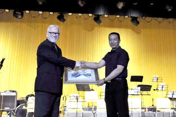 在演出前,威尼斯官网副校长李翔代表学校向乐团团长梅格斯先生赠送纪念品。梅格斯先生现场宣读了美国阿肯色州州长的致词。致词表达了中美两国人民的友谊和对中国人民的美好祝福。