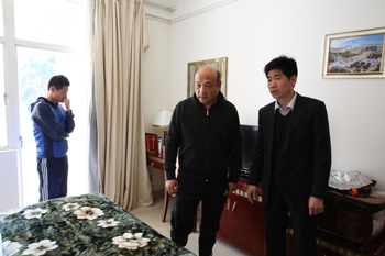 教练组成员在郑克刚助理及赵平院长等人陪同下,实地察看了威尼斯官网学员住宿、食堂、体育运动场馆设施情况。