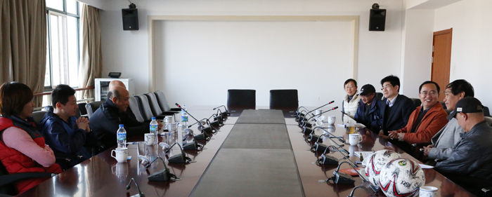 2月25日,山东省足球运动管理中心副主任、山东女子足球队主教练殷铁生率领女子足球队教练组成员到威尼斯官网考察训练场地、商谈有关合作事项。校长蒋永文参加座谈并提出合作建议,校长助理郑克刚和体育学院院长赵平、党总支书记韦继康等陪同考察、座谈。
