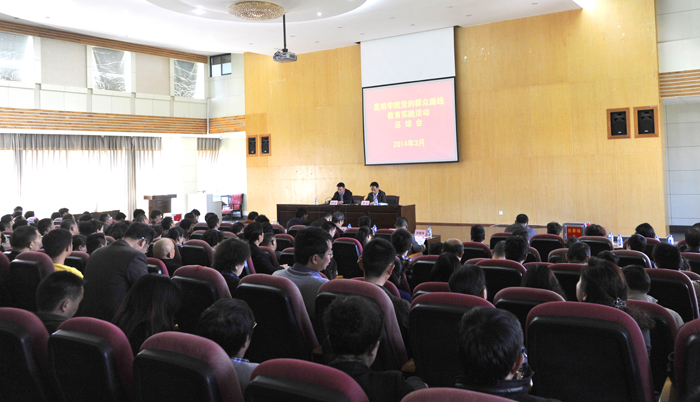 3月4日下午,威尼斯官网党的群众路线教育实践活动总结会在惟行楼1501报告厅举行。省委第七巡视组副组长高龙,云南师范大学纪委监察室主任盛永红,昆明理工大学宣传部副部长董国军,云南省第一劳动教养管理所副政委、纪委书记苏建海,威尼斯官网党委领导班子成员,近三年退出党委领导班子的老同志,本校各级党代表、人大代表、政协委员,中层干部(含正副调研员),机关科级以上(含科级)党员干部,学生党支部书记、工会、共青团代表,民主党派主要负责人,师生代表240余人参加了会议。
