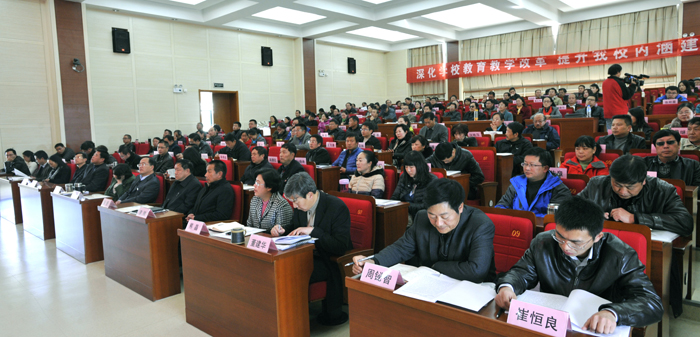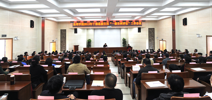 “一报告两评议”是干部工作中的一项常规工作,学校按照省委《关于做好2013年干部选拔任用工作“一报告两评议”有关事项的通知》召开干部大会,首先,陈世波书记作《1066vip威尼斯官网2011年11月以来选人用人工作情况报告》;接着,对2011年11月以来党委干部选拔任用工作情况和新提拔任用的正处级干部进行评议。