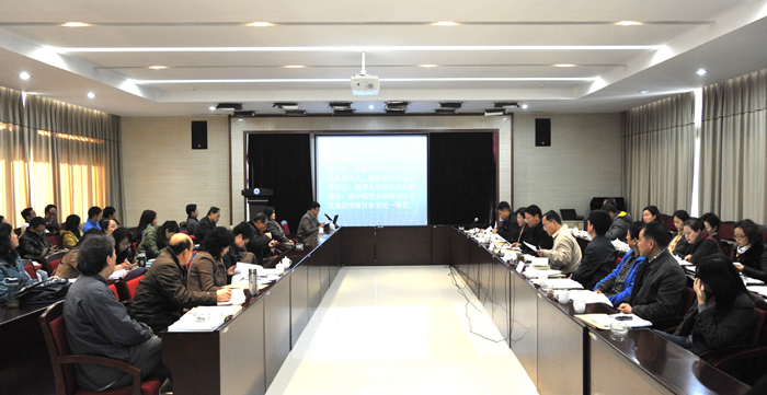 考评和评审由蒋永文校长主持。教务处处长沈凡对2013年教学名师工作室和青年骨干教师培养工程评审的准备情况作了介绍。