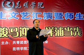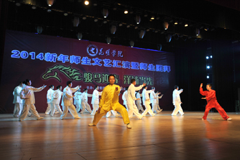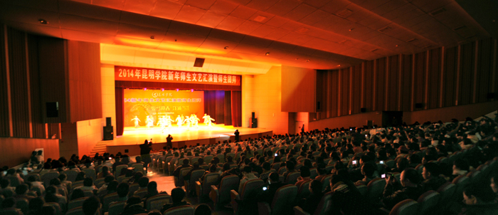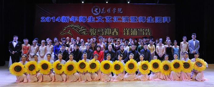 为迎接2014年新年的到来,丰富校园文化生活,展现师生风采,凝聚爱校精神,执此辞旧迎新之际,由学校团委、学校工会联合主办的“骏马迎春,洋浦当先”新年师生文艺汇演暨师生团拜活动于12月27日在学生会堂隆重举行。学校校长蒋永文,党委副书记孙勇、李媛芬,副校长李翔、熊晶、刘海发、董建华,校长助理郑克刚,学校全体中层干部、各院系团总支书记、全体辅导员、各院系师生代表1500余人参加了本次活动。