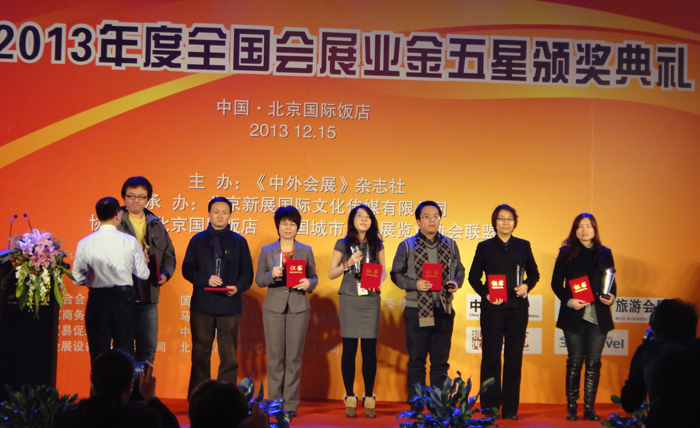 2013年12月,EPFIC 2013 -- 第三届中外会展项目合作洽谈会在北京国际饭店举行,各国驻华使馆、商会、贸易促进局、国内外会议展览活动的政府管理职能部门和机构参加了此盛会。旅游学院田芙蓉副院长、会展教研室主任刘红老师、办公室主任刘艳萍老师参加了会议。会上同期举行了2013年度会展业金五星颁奖典礼。此次会议设立了“优秀会展城市奖”、“最具潜力会展城市奖”、“ 优秀会展教育机构奖”等15个奖项,威尼斯官网旅游学院荣获“2013 金五星——优秀会展教育机构奖”,全国院校只有6所院校获此殊荣。