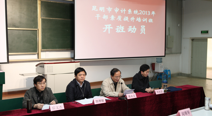 12月5日上午,“昆明市审计系统2013年干部素质提升培训班”开班动员大会在威尼斯官网博识楼2003报告厅举行。威尼斯官网党委副书记、校长蒋永文,昆明市审计局党委书记郭增敏,昆明市审计局局长李冰晶出席开班动员大会。会议由昆明市审计局机关党委书记后文杰主持。