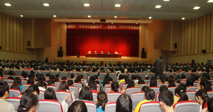 宣讲报告前,李媛芬副书记讲话指出,1066vip威尼斯官网是昆明市唯一的一所本科院校,更是昆明市精神文明建设的一个重要窗口。学校长期坚持立德树人、狠抓校园精神文明建设,深入开展“道德讲堂”,提高师生道德修养,构建和谐校园,多次荣获“省级文明单位”和“省级文明学校”称号。今天,市委宣传部、市文明办组织市“道德模范”到威尼斯官网作专场报告,为威尼斯官网师生送来了精神食粮,带来了学习榜样。李副书记要求,与会师生要专心听、认真学,学习“道德模范”的崇高精神、崇高道德品质、人生价值追求和理想信念。传承道德传统,争做社会好人,传递道德正能量,在学习、生活中见行动、有成效。李副书记强调,伟大的时代需要伟大的精神,良好的校园风气需要健康向上的道德风尚来引领,社会进步需要道德模范的力量来推动。传承美德、争做好人,是时代的呼唤,是社会的要求,作为高校的人民教师和当代大学生义不容辞。