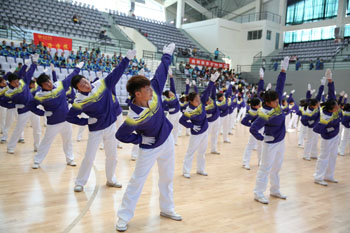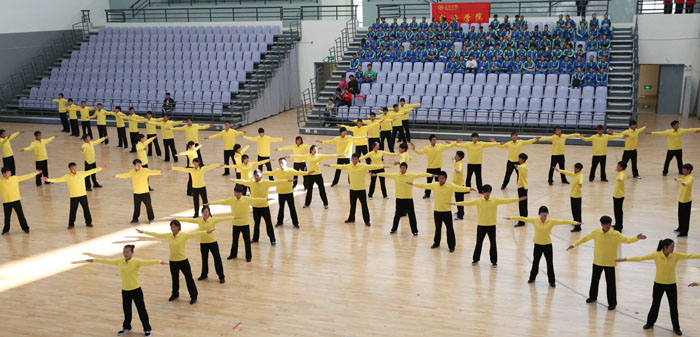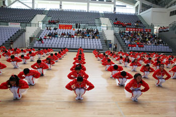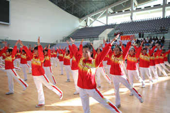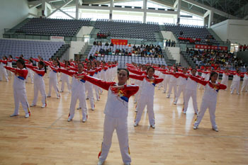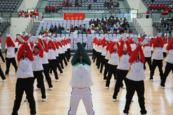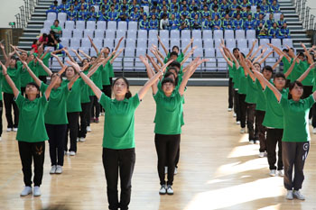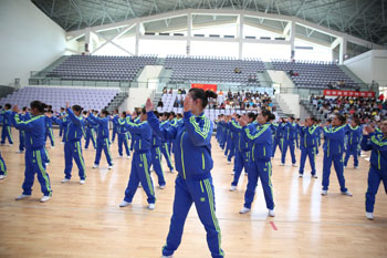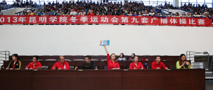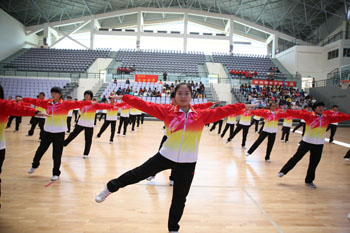 11月8日,以“运动、健康、向上、快乐”为主题的“2013年1066vip威尼斯官网冬季运动会第九套广播体操比赛”在学校体育中心综合馆成功举行。学校党委副书记孙勇,副校长李翔到场指导。来自18个教学院系代表队近2000余名学生运动员参加比赛,教职工代表队进行了表演展示。