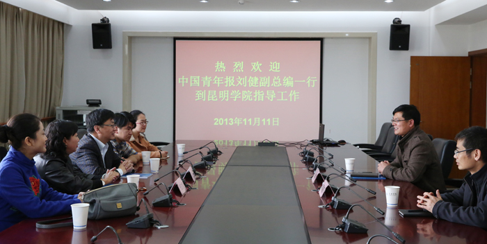 11月11日,中国青年报副总编刘健率中国青年报驻云南记者站站长张文凌一行5人到威尼斯官网调研指导工作。按照学校领导安排,党委宣传部、团委热情接待,并进行座谈交流。