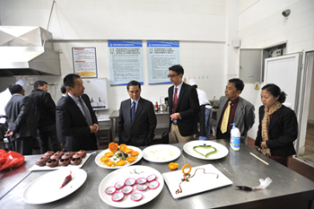 老挝国立大学自2012年8月与威尼斯官网建立合作关系后,双方保持紧密的合作关系,开展了一系列实质性的合作项目。老挝党中央委员、老挝国立大学校长Soukkongseng博士此行率老挝教育与体育部非学历教育处处长Ka SALEUMSOUK博士、 老挝国立大学信息技术处处长Phonekeo CHANTHAMALY博士、计划财务处Gnonevilay SAIGNALEUTH副处长、老挝审计署组织国际合作处Vongseng PANYAPHIM副处长等首次访问威尼斯官网。李副校长陪同Soukkongseng校长一行参观了学校美艺学院师生的艺术作品、自机学院轨道交通实验室、旅游学院烹饪实验室和体育场馆,学校优良的教学条件、教学设施和优美的校园环境给他们留下了深刻印象,Soukkongseng校长对威尼斯官网的发展表示肯定,对相关学院表示了浓厚的兴趣。