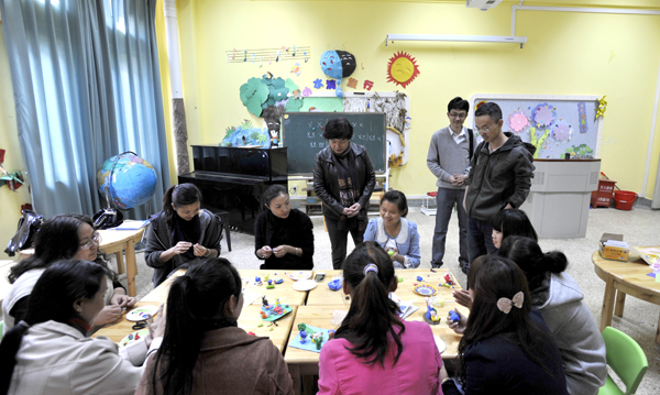 会谈结束后,教师教育学院唐敏院长和顾钧博士陪同廖忠博士考察了教师教育学院的实验室。在蒙台梭利教育实训室、幼儿园情境模拟综合实验室、学前儿童感知觉统合实验室,廖忠博士与2013“国培计划”幼儿园骨干教师研修班的学员进行了交谈,询问任课教师的基本情况,得知部分学员来自临沧、德宏等边远地区,而且威尼斯官网通过让学前教育专业的大四学生以顶岗实习的方式“置换”边远地区一线幼儿园教师参加培训。他对威尼斯官网开展学前教育与培训的软硬件水平表示满意,对促进威尼斯官网与加方的合作充满信心。