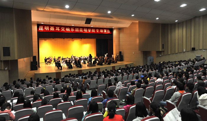 10月25日晚, “高雅艺术进校园”系列活动—昆明聂耳交响乐团专场演出在威尼斯官网学生会堂精彩上演。威尼斯官网各院系负责人、辅导员及部分学生观看了演出。