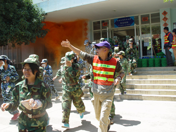 中午12:59分,消防警报在校园上空响起,润泽苑、澄明苑学生宿舍片区以及食堂片区突发“火情”,顿时“火场”区域被浓烟笼罩,由保卫干部、辅导员、宿管人员、军训教官、学生治安服务队员共180余人担任的疏散引导员吹响了紧急疏散的哨声,同学们用湿毛巾捂住口鼻,用低姿势在疏散引导员的指挥下紧张有序地撤离起火区域,并快速向指定安全区域撤离。此时,校医院的医疗救护人员也赶到现场,作好救护准备。13:10分,同学们从学生宿舍、食堂各安全出口安全疏散到指定区域。各组清点人数向总指挥报告疏散情况,总指挥对演练活动进行了点评。消防应急消防疏散演练活动圆满结束。