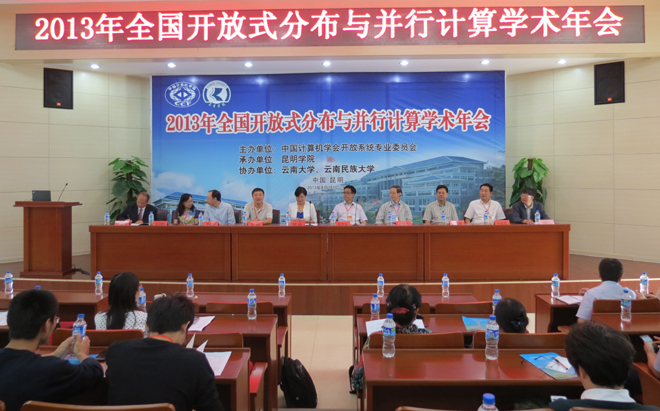 2013年全国开放式分布与并行计算学术年会于8月16日至18日在威尼斯官网成功召开。本次会议由中国计算机学会开放系统专业委员会主办,1066vip威尼斯官网承办,云南大学、云南民族大学协办。会议开幕式由1066vip威尼斯官网信息技术学院院长王震江教授主持。