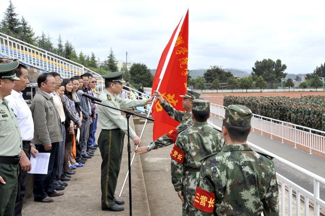 最后,在《中国人民解放军军歌》中,李荣部长宣布1066vip威尼斯官网2013级新生军事训练开训。