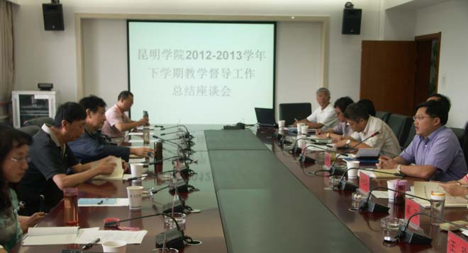 为加强学校教风学风建设,切实发挥教学督导在教学工作中的监督和指导作用,7月3日上午,学校在办公楼311会议室召开2012—2013学年下学期教学督导工作总结座谈会。校长蒋永文、副校长罗明东出席会议,学校督导组全体成员、教务处处长副处长、各科科长、副科长等参加会议。会议由罗副校长主持。