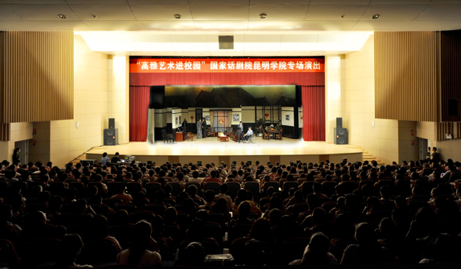 为丰富校园文化生活,提高学生艺术修养和文化素质,为高校学生的健康成长营造良好的文化环境,推动学校高雅艺术的普及工作,5月29、30日晚,“高雅艺术进校园——中国国家话剧院1066vip威尼斯官网专场演出”在学生会堂举行。学校领导、中层干部及各院系师生代表共1300余人观看了演出。
