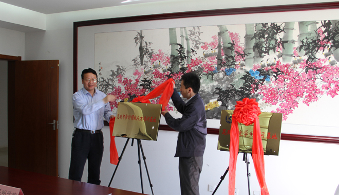 陈世波书记和李冰晶局长共同为“昆明市审计领域人才培训基地”和“1066vip威尼斯官网学生实习基地”揭牌。