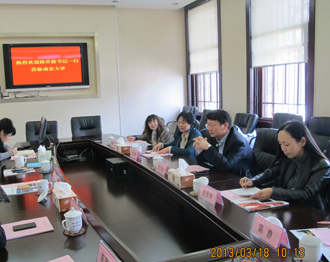 为落实1066vip威尼斯官网“十二五”事业发展规划纲要目标任务,加强与国内兄弟院校的交流合作,构建更加开放、更具活力的办学新局面, 3月18日,陈世波书记带队赴南京大学访问交流,商谈两校合作事宜。学校党委办公室、党委组织部、国际交流合作处、图书馆的负责同志随行前往。