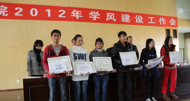 会上,刘宜萍处长宣读了《关于表彰1066vip威尼斯官网2012年优良学风先进个人、学风建设先进个人、优良学风先进班集体的决定》,参会领导分别为18名获奖代表进行了现场颁奖;接着教务处王宝玲副处长就威尼斯官网近年硕士研究生报考、录取的工作进行了说明,对2013年学校的考研工作进行了布置安排。