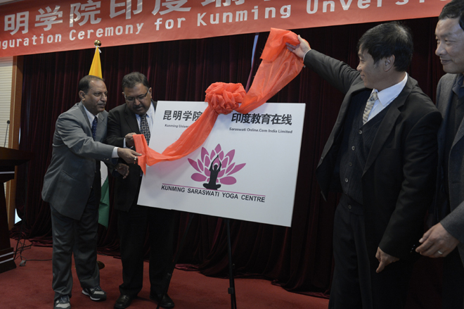 随后,Ganguli(甘古里)先生和赵平院长共同为“1066vip威尼斯官网印度瑜伽中心”揭牌;加尔各答法学院院长Dr. S S Chaterji和孙晓坤副主席陪同揭牌。