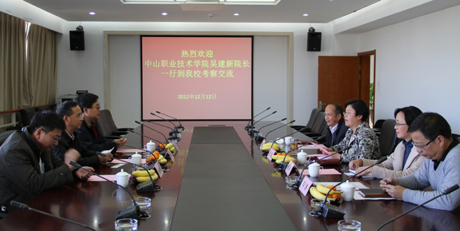 熊副校长从威尼斯官网办学历史、发展定位、人才培养、教师队伍、学科专业、教学科研等方面向客人介绍了学校的基本情况;毕涛院长介绍了自动控制与机械工程学院的特色专业和教学实验实训中心。中山职业技术学院吴院长和肖主任也介绍了该院的办学模式等情况和电梯专业在今后的发展前景,并观看了威尼斯官网的宣传片《丰壤育才耀春城》。