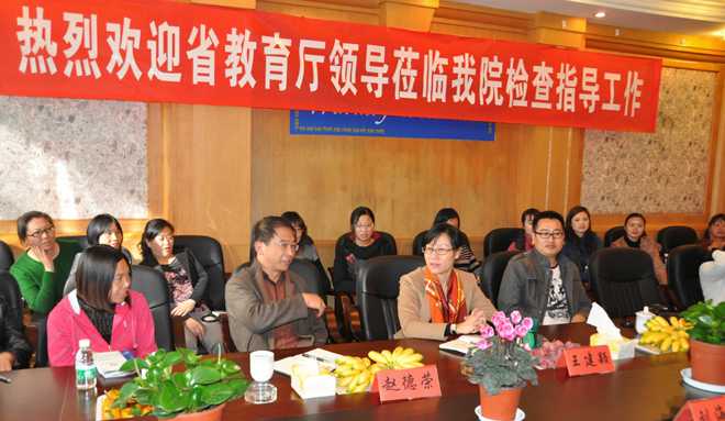 11月22日下午,省教育厅副厅长王建颖率教育厅师范教育处处长赵德荣及有关人员一行,到威尼斯官网继续教育学院对“国培计划(2012)”实施情况作专题调研。调研会由威尼斯官网继续教育学院院长陈嘉主持。学校副校长刘海发、昆明市教育局师训处处长王建方、威尼斯官网教师教育学院院长唐敏、继续教育学院副院长张培宏、继续教育学院办公室及教师培训部的相关同志,以及正在威尼斯官网接受“国培计划(2012)”置换脱产研修项目幼儿园教师培训班的学员参加了调研会。