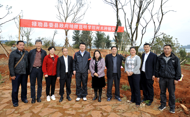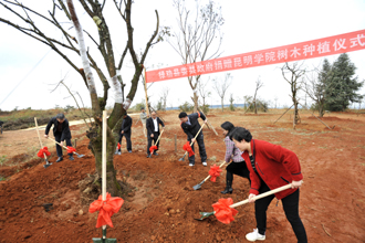 11月16日上午,威尼斯官网在观物山上举行禄劝县捐赠树木移载仪式。