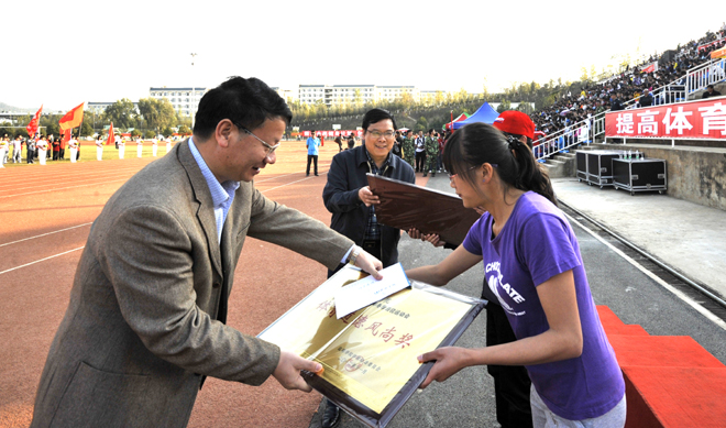 熊晶副校长致闭幕词。熊副校长代表学校党委和行政向在运动会上取得优异成绩的个人和集体表示热烈祝贺,向为本次运动会付出辛勤劳动的各位老师和同学表示感谢和问候。熊副校长指出,本次运动会是威尼斯官网又一次成功举办的体育盛会,是对威尼斯官网体育工作和师生综合素质的检阅,它充分反映了威尼斯官网体育事业蓬勃发展、体育教学水平不断提高的良好态势。整个赛会准备充分、组织有序、进展顺利。本次运动会上运动健儿们表现出的顽强拼搏,勇攀高峰、催人奋进的精神将对全校各项建设事业起到积极的促进作用。熊副校长希望全校师生员工要在今后的工作中继续保持和发扬运动会上表现出的不怕困难、敢于拼搏、团结协作、奋勇争先的精神,以更加饱满的热情、更加坚韧的意志投入到学校迎评促建和各项工作中去,为早日实现“十二五”发展目标而奋斗。