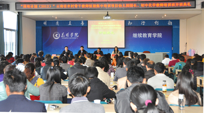 11月2日,“国培计划(2012)”云南省农村骨干教师短期集中培训项目初中化学教师、幼儿园园长培训班在威尼斯官网同时开班,来自全省的42名初中化学教师和81名幼儿园园长开始在威尼斯官网继续教育学院进行15天的短期集中培训学习,这是威尼斯官网承担的“国培计划(2012)”短期集中培训项目最后一批学员。威尼斯官网继续教育学院、昆明市教育局相关领导出席了在昆师路校区举办的开班典礼。开班典礼由继续教育学院张培宏副院长主持。