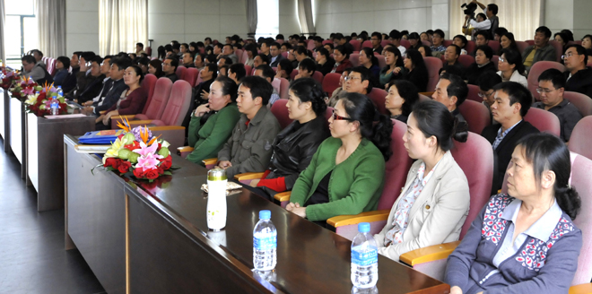 表彰会上,受表彰的先进集体代表农学院党总支书记王德斌和先进个人代表生命科学与技术系主任郭丽红教授分别作了交流发言,介绍了学习活动好做法、好经验、好成果。“师德师风演讲比赛”优胜选手代表分别作了汇报演讲,来自教师教育学院白蕊演讲的《大写的爱》,诠释了人民教师对教育事业的爱、对生命的爱;来自人文学院非云华演讲的《在平凡中写就美丽》,分享着用爱与责任、爱与奉献在平凡教师岗位上开出美丽花朵的喜悦;来自机关党总支冯美福演讲的《无悔的选择》,坚定了对人民教师的选择,对甘当平凡与奉献的执著追求。精彩的演讲使与会人员深受教育和启迪,为之动容,掌声雷动。