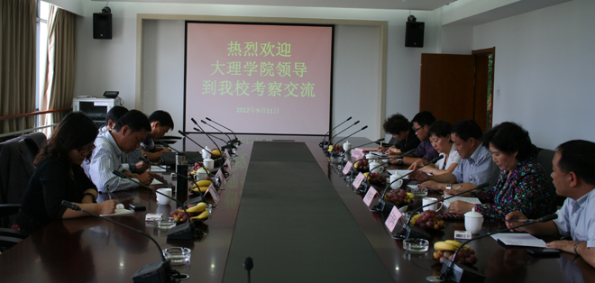 2012年9月11日下午,大理学院党委副书记段林、纪委书记张明以及组织部干部科长、组织科长一行4人就干部聘任工作到威尼斯官网交流、考察。学校党委副书记孙勇,党委副书记、纪委书记李媛芬和组织部部长杨璐、副部长钱海鼎出席了交流会议。