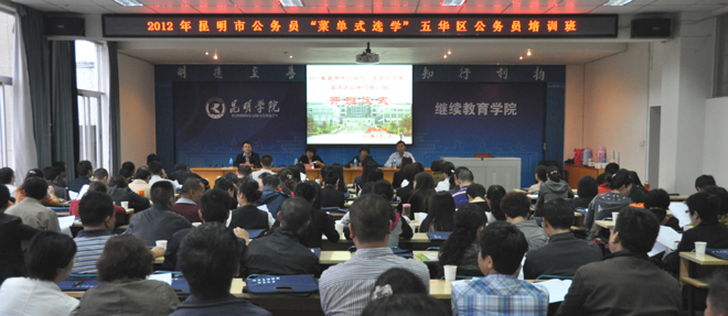 经威尼斯官网继续教育学院的精心准备和积极申报,威尼斯官网和云南大学、云南财经大学3所高校被确定为2012年昆明市公务员“菜单式选学”培训承办单位。除五华区公务员培训外,在接下来近两个月的时间内,威尼斯官网还将承担来自昆明市财政局、石林县等部门和县区的400余名公务员的培训工作。