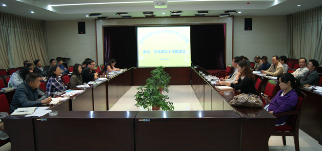 会议首先由教务处沈凡处长就威尼斯官网教风建设的相关情况作发言,沈处长结合教育部印发的《高等学校教师职业道德规范》及普通高校本科教学工作合格评估的相关指标体系,对加强威尼斯官网教风建设的重要性、紧迫性作了深入分析,从几个方面列举了威尼斯官网教风建设的现状。最后沈处长从教务处的角度,提出了开展教风建设工作重点要解决的问题和加强教风建设的主要措施。重点要解决的问题是:1.加强师德修养、模范遵守教师职业道德规范;2、加强制度建设,规范教师社会兼职和校外活动,促使教师把主要精力投入到教学工作中;3.提高教师的业务素质;4.建立教风建设的保障机制和长效机制。加强教风建设的主要措施是:1.加强对教风建设的领导;2.在师资队伍建设工作中突出优良教风建设;3.完善规章制度,引导教师树立优良教风;4.加大教学过程监控和教学质量管理的力度,促进优良考风的建设;5、完善教师教学工作评价体系,加大奖惩力度;6.大力营造建设优良教风促学风的良好氛围。