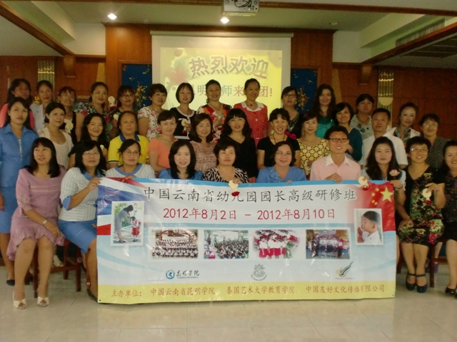 为发挥威尼斯官网服务地方经济社会发展的作用,学习周边国家学前教育的办学理念和模式,提高幼儿园园长的管理水平,推进教育国际交流合作和我省学前教育的改革发展,8月2日至10日,威尼斯官网国际交流合作处、教师教育学院和泰国Silpakorn大学(艺术大学)教育学院、中国友好文化传播有限公司(泰国)联合举办“中国云南省幼儿园园长高级研修班”。来自昆明市和8所地州幼儿园的32位园长在威尼斯官网教师教育学院院长唐敏带领下考察了泰国Silpakorn大学(艺术大学)教育学院、泰国艺术大学附属幼儿园、约瑟小学及幼儿园、巴西龙成学校等教育机构。泰国艺术大学教育学院副院长为考察团举办了关于学前教育的发展及管理专题学术讲座。